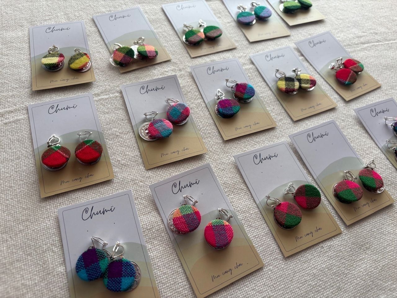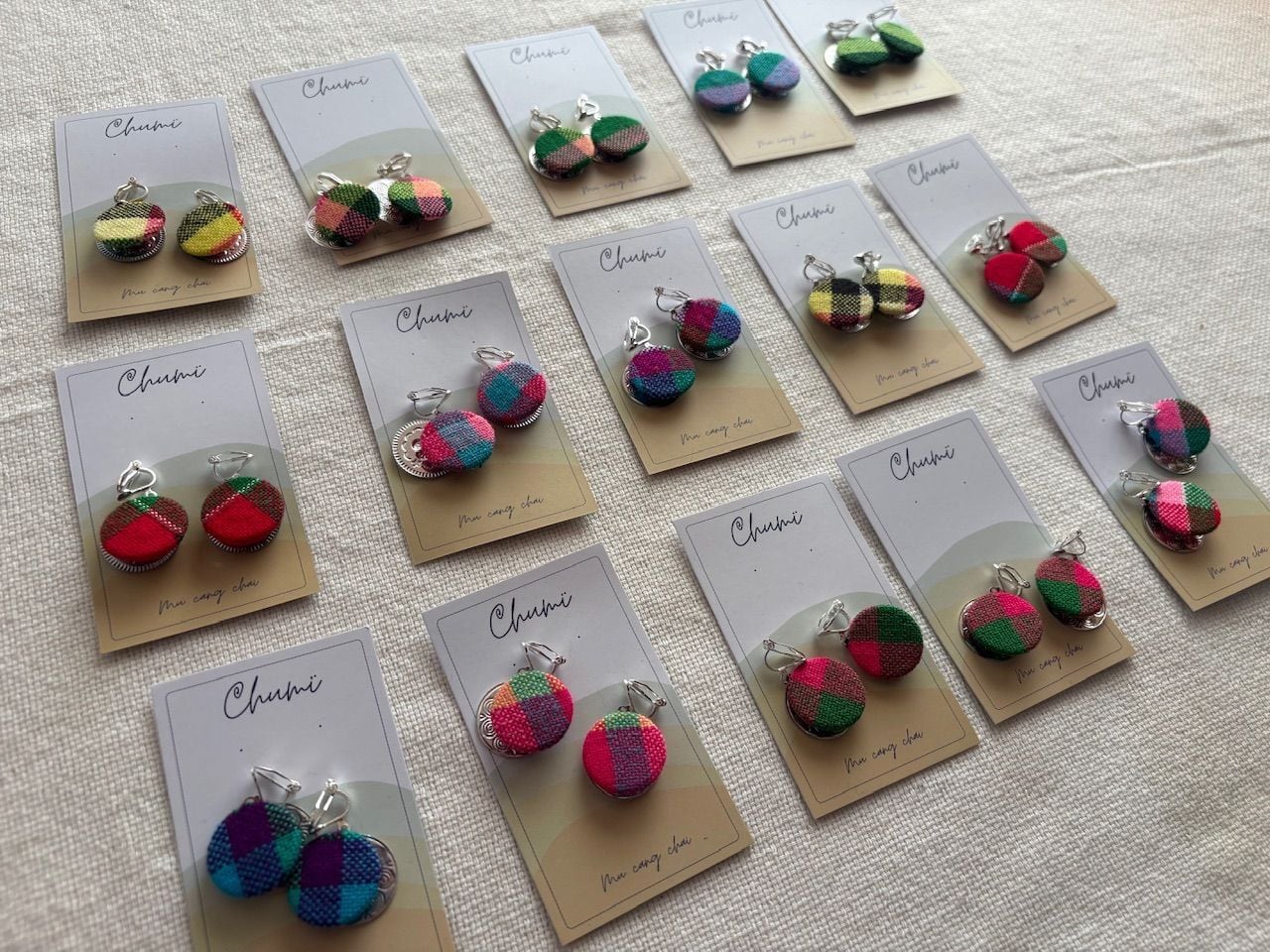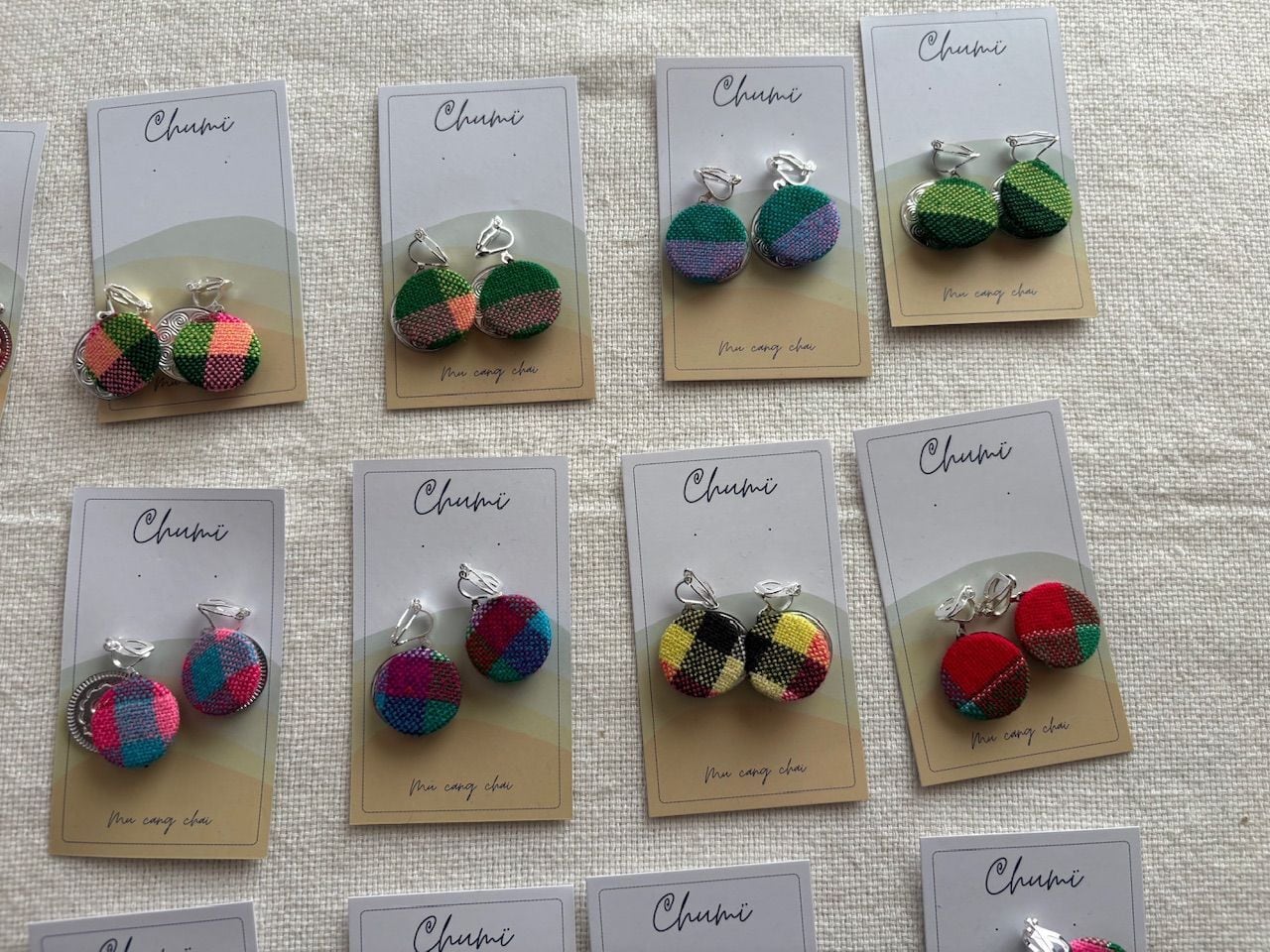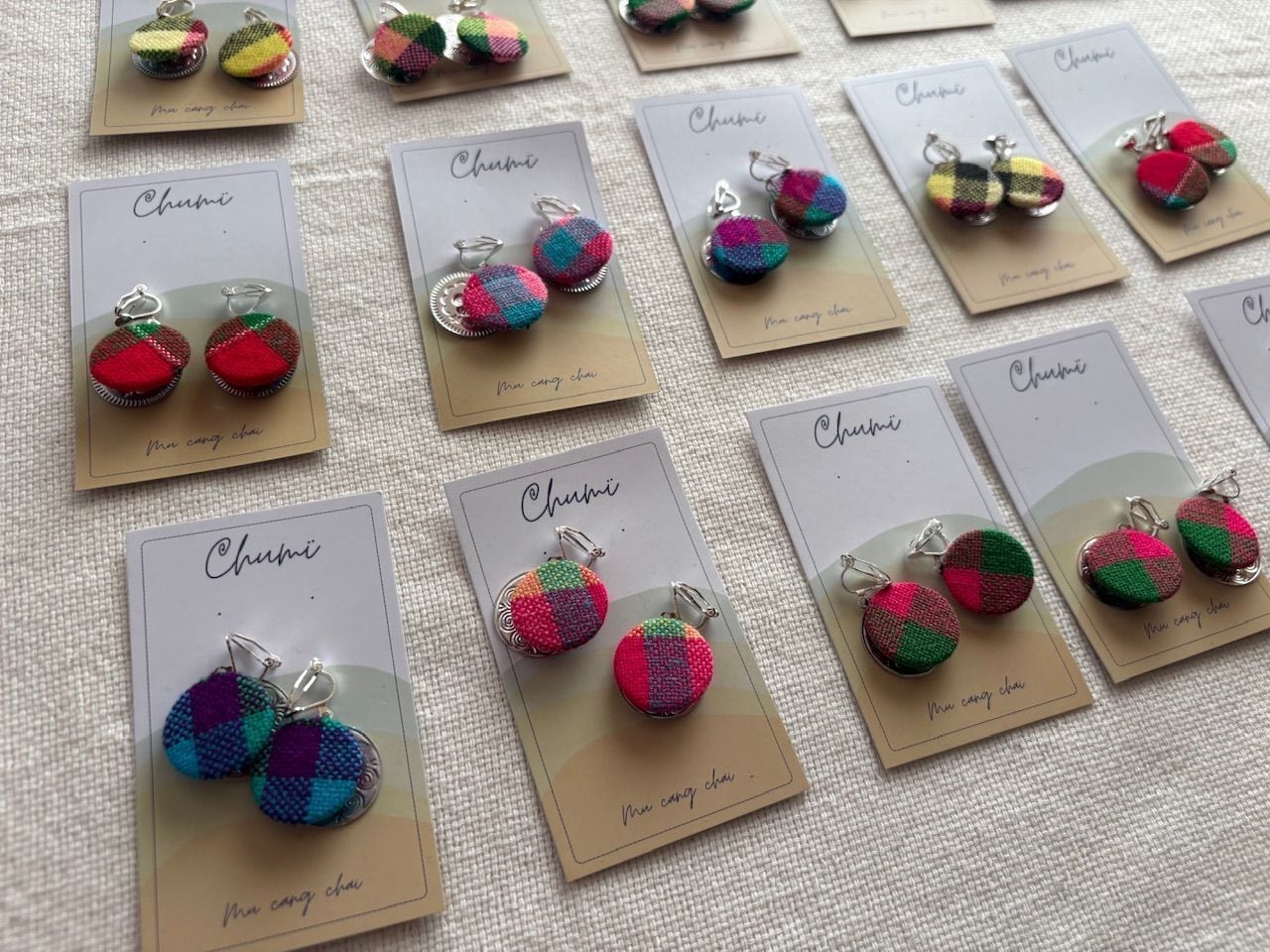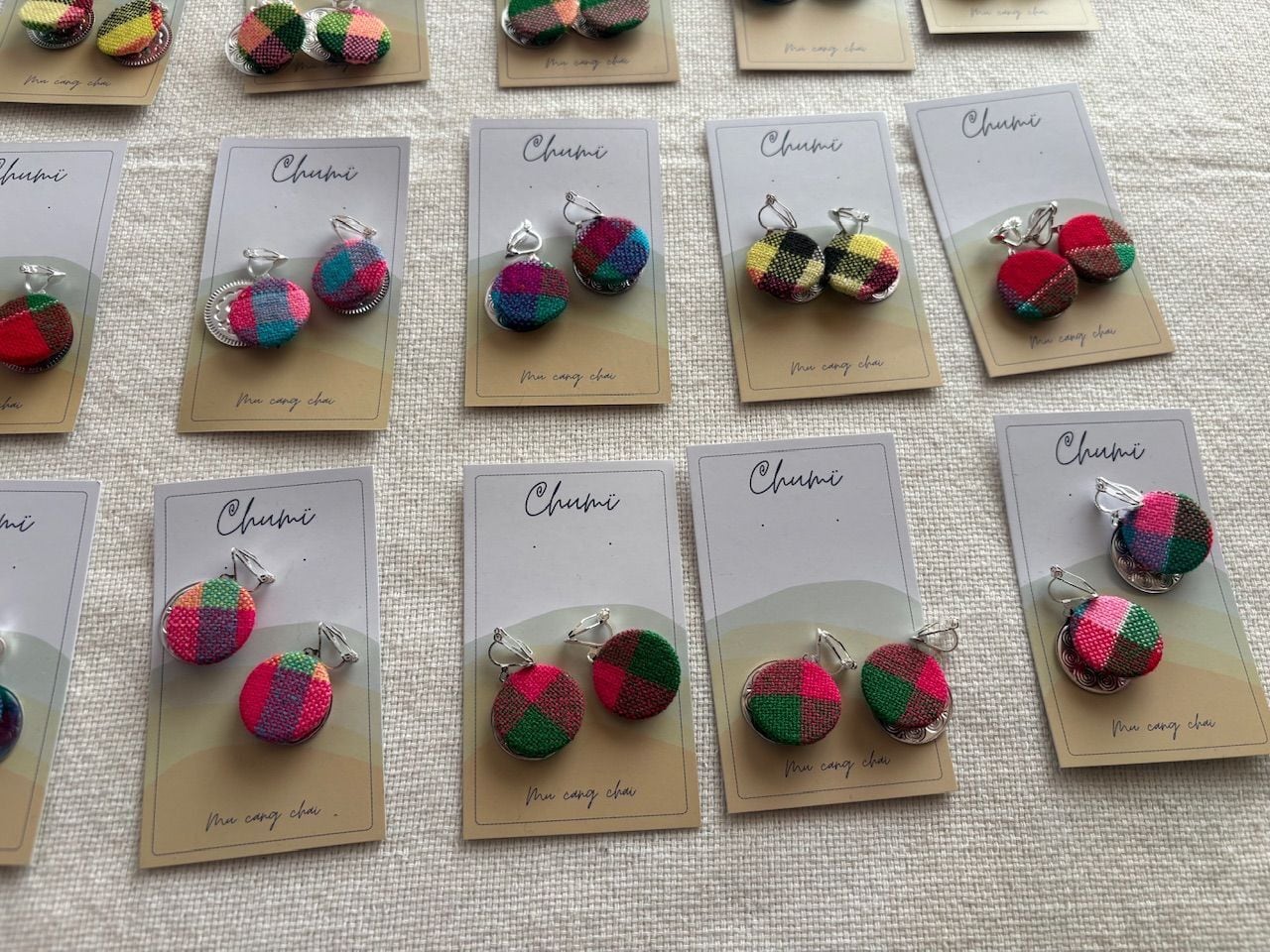 モン族の女性が頭に被っているチェック柄のスカーフを使用したイヤリングです。