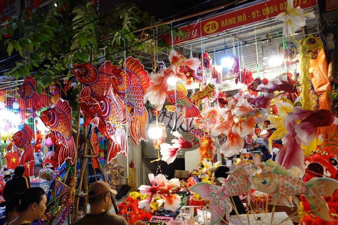 ハノイ旧市街・ハンマー通りでは、この時期になると一番の賑わいを見せ(後方の写真です)