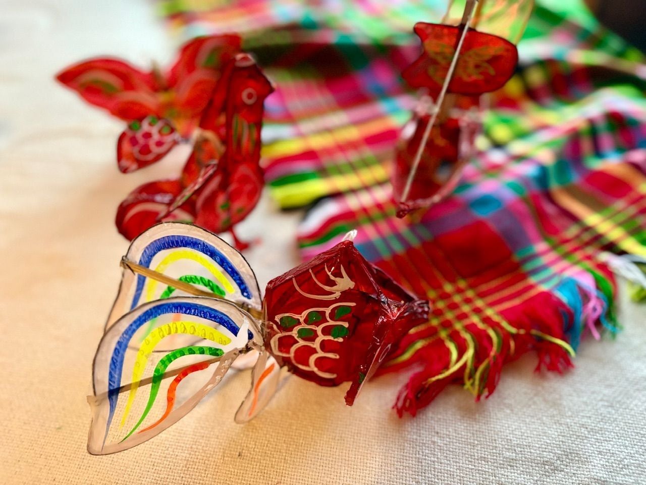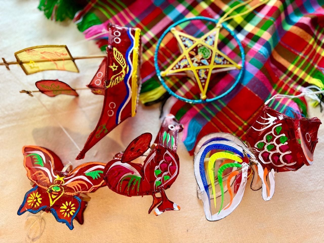 越南道具で仕入れたランタン飾りの特徴は手書きです。セロハンには手書きで描かれています(星以外)プリントもありますが、温かみのある手書きのみを仕入れてきました。