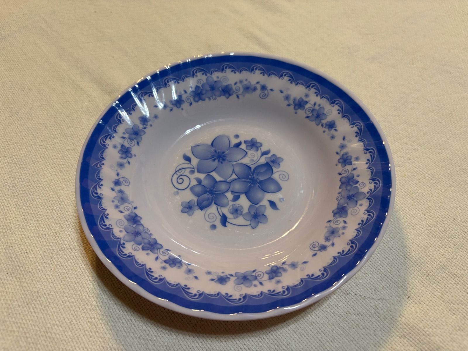 【メラミン青花 リム皿 ⑦】少し深さあり