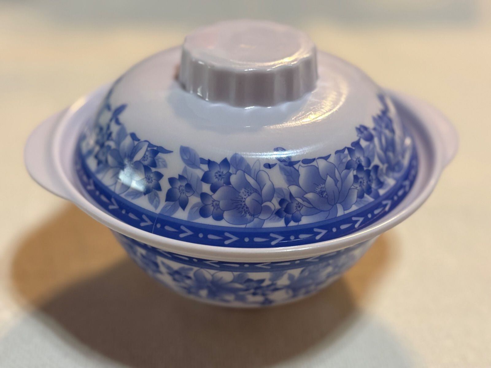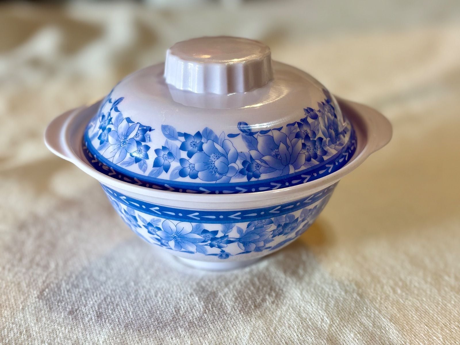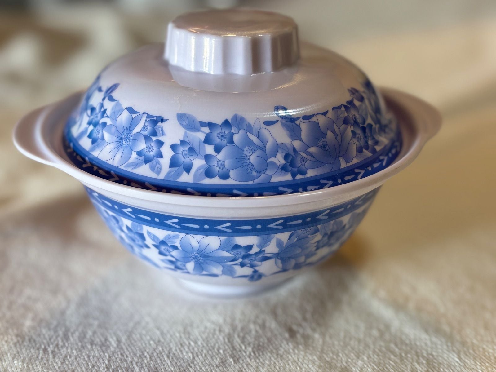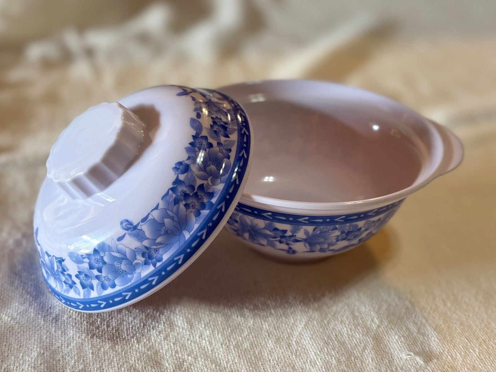 【メラミン青花柄 蓋付きボウル】蓋付きどんぶり