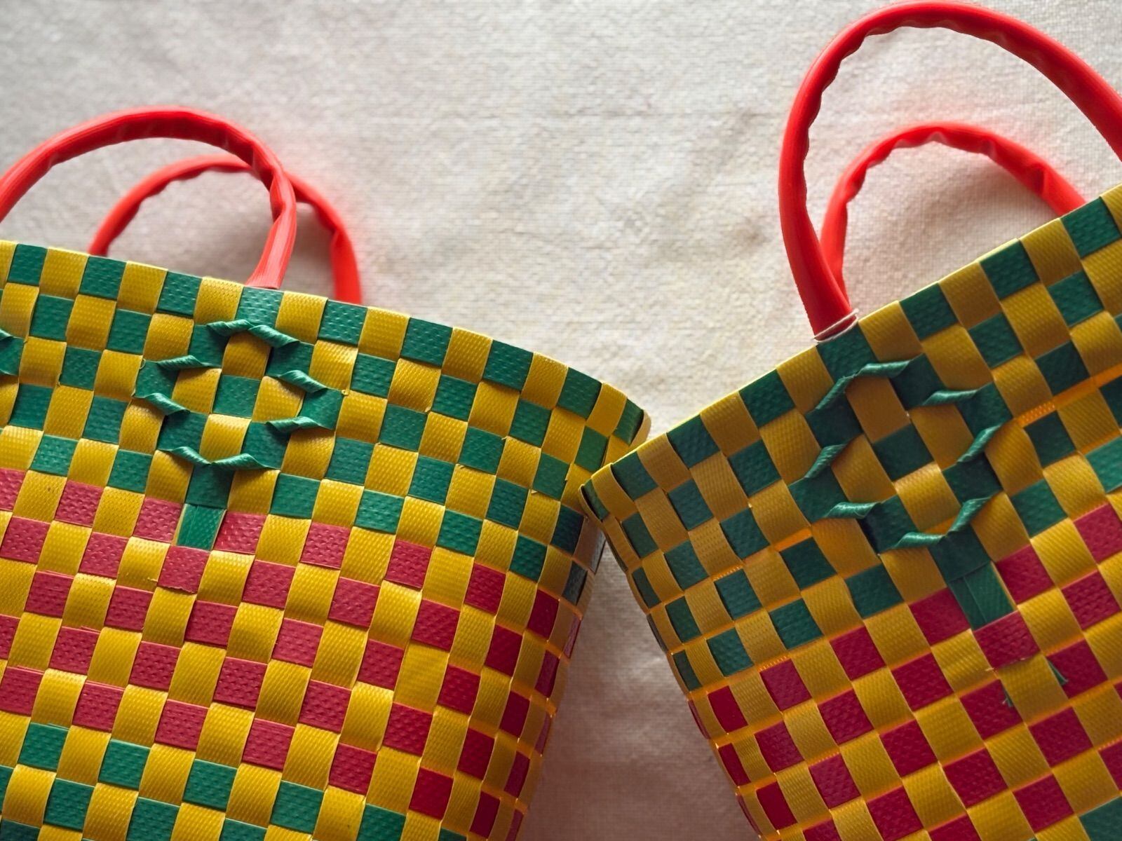 ベトナムホーチミンに行った事のある方は見た事がある?!飾り編みなどありませんがベトナム人に人気No.1のプラカゴです。天秤棒のおばちゃんも、野菜を売る露天商も高確率でこの配色のプラカゴを使っています。